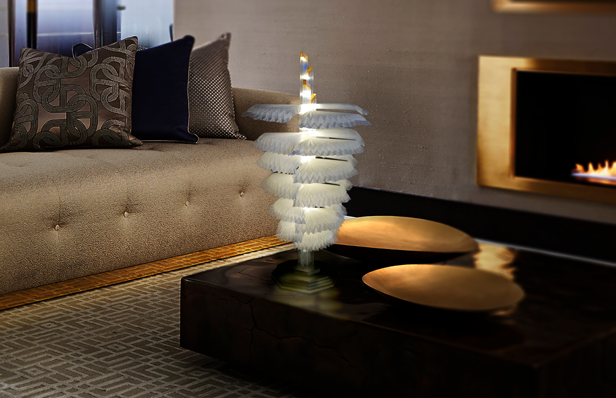 This Art Deco inspired lamp aim is to use the beauty of intricate origami folding techniques as the design’s main feature to replicate the captivating water fountains seen around luxury estates or gardens.